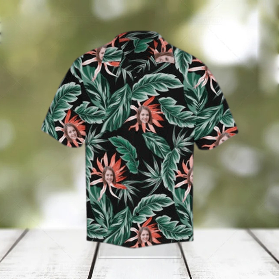 Custom Face Red Flowers Green Leaves Men s All Over Print Hawaiian Shirt