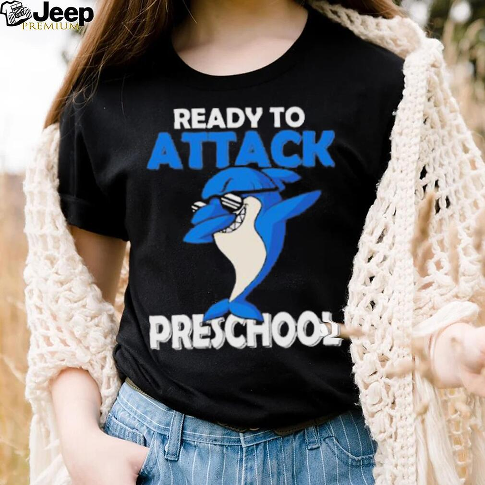 Ready to attack shark dabbing preschool shirt